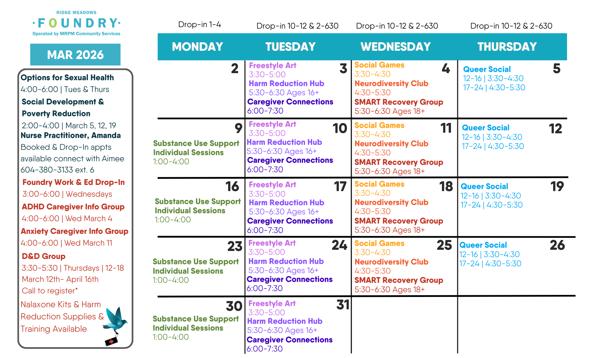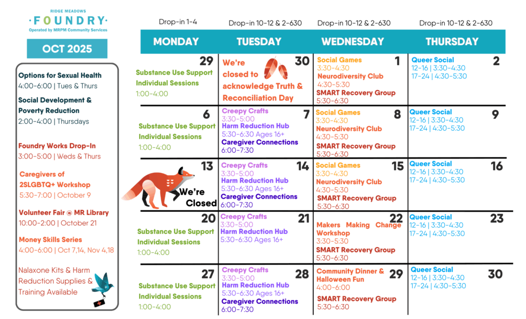 Foundry Ridge Meadows helps young people 12-24 and their caregivers access mental health and substance use support, physical/sexual health, peer support, and social services. Foundry makes it easy for young people and their families to find the care, connection and support they are seeking. If you are a youth living with substance use or mental health challenges this is a safe and informative place to seek help with tough topics.
